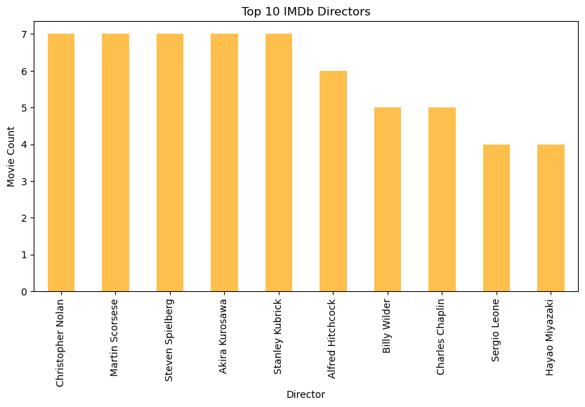 imdb_top_directors.plot(kind='bar', alpha=0.7, label='IMDb', color='orange')